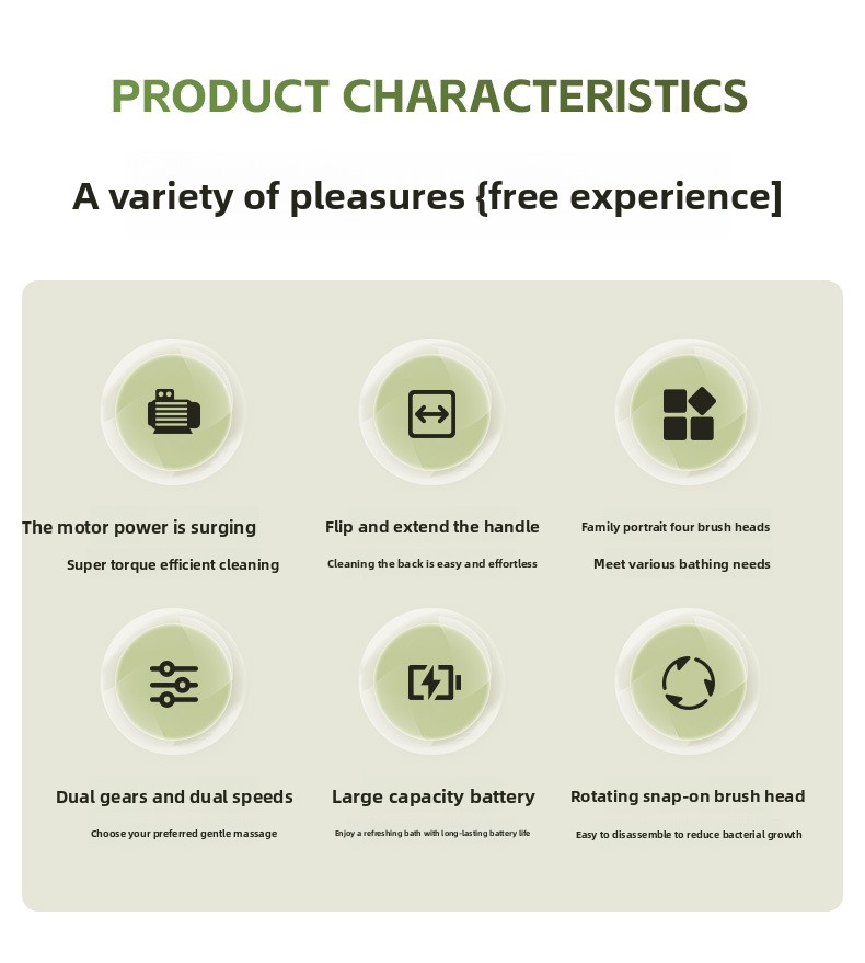 Upgrade your shower routine with this electric body bath brush, designed to deeply cleanse your skin while remaining gentle and easy to use. The long handle helps you reach hard-to-clean areas effortlessly, making it perfect for daily hygiene and relaxation.
